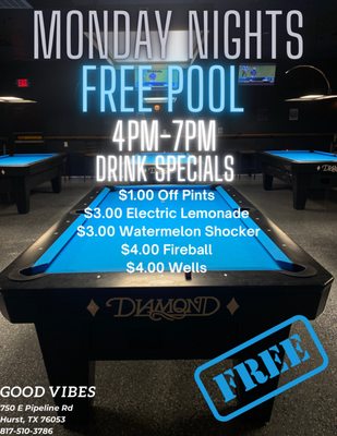 Good Vibes Bar Billiards Eatery offers a relaxed space where you can enjoy American cuisine while soaking in a laid-back atmosphere. Situated at 750 E Pipeline Rd in Hurst, Texas, this spot combines delicious food with the fun of billiards, making it a great place to unwind after a long day.